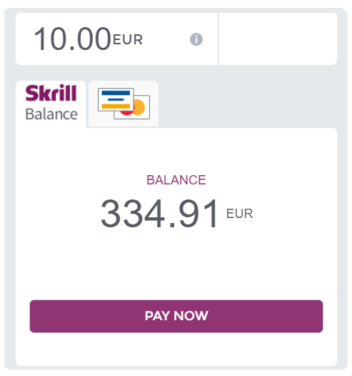 Tako ulogovani dobićete na potvrdu visinu iznosa koju uplaćujete i imaćete na uvid Vaše stanje na Skrill nalogu i potrebno je kliknuti na PAY NOW kako biste kompletirali uplatu.